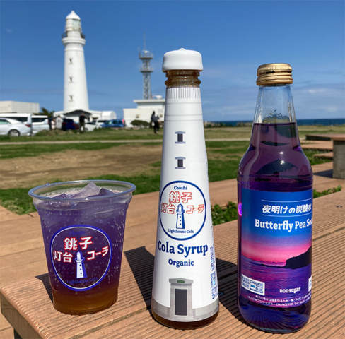 オレンジのコーラシロップ「銚子灯台コーラ」に、青い炭酸水「夜明けの炭酸水」を注ぐと(1:3の割合)、銚子の海から太陽が昇る風景のようなキレイなグラデーションのクラフトコーラが完成!飲むときはよくかき混ぜて飲んで下さい。現在「犬吠テラステラス」と「ハーブガーデン・ポケット」(共に銚子市)で販売中ですが、今後は道の駅でも販売する予定ですので、皆さんこの2商品を是非セットで買って、銚子のキレイな海を想像しながら飲んでみて下さい。そして銚子を始め千葉の海をキレイで豊かな海として、次世代に残すためにも、海洋ごみ削減のために出来ることを実践していきましょう!